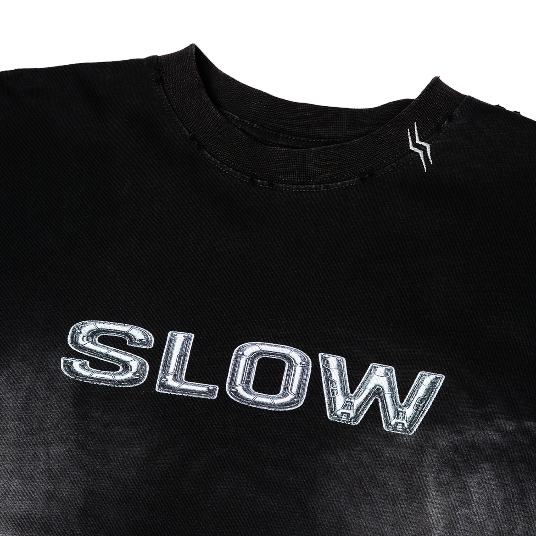 The "SLOW" Metal Tee features a sleek industrial design inspired by metalwork aesthetics, combining durability with modern style. Crafted for those who appreciate minimalist yet bold fashion, this tee offers a distinctive look that stands out in any casual setting. Its design emphasizes clean lines and a structured print, making it a versatile piece for layering or wearing solo. Ideal for individuals seeking a contemporary edge in their wardrobe with a nod to industrial artistry.