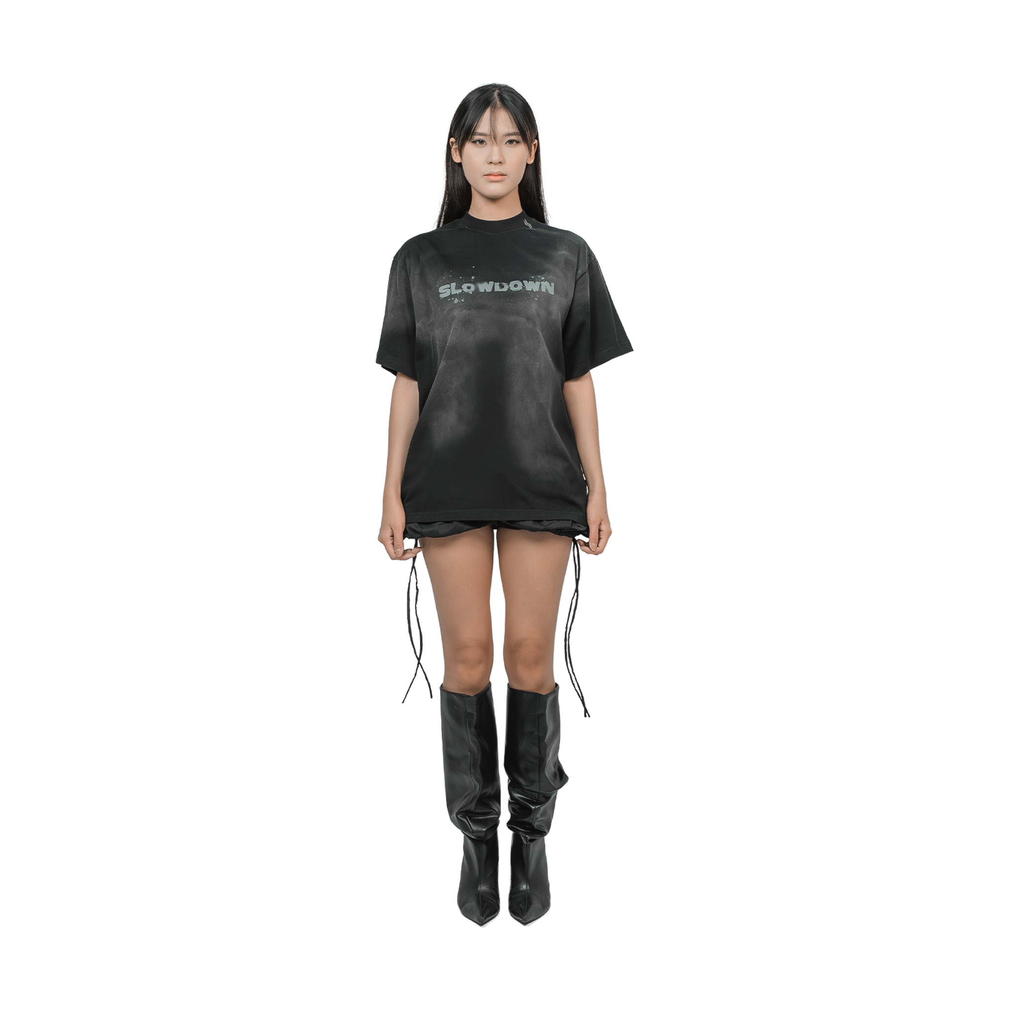 The SLOWDOWN Washed Ink Splash Tee features a distinctive ink splash design enhanced with a washed treatment, embodying an authentic streetwear aesthetic. Crafted from durable 100% cotton at 290gsm, it offers both comfort and resilience. Accents like the metal tag on the back and precise embroidered lettering add subtle, refined details that elevate its urban appeal. This tee is designed for those who value quality and standout style in everyday wear.